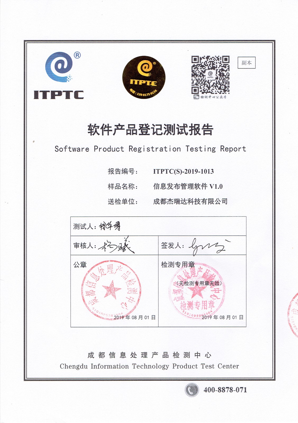 热烈庆贺ug环球会员注册的信息发布管理软件和智能排队管理软件通过国家测试!
