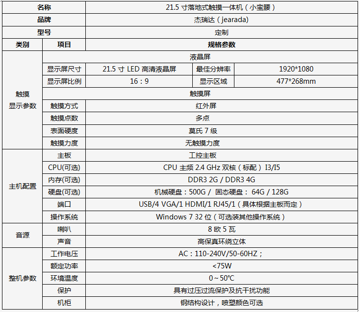 产品名称:落地式触摸查询一体机(小蛮腰)