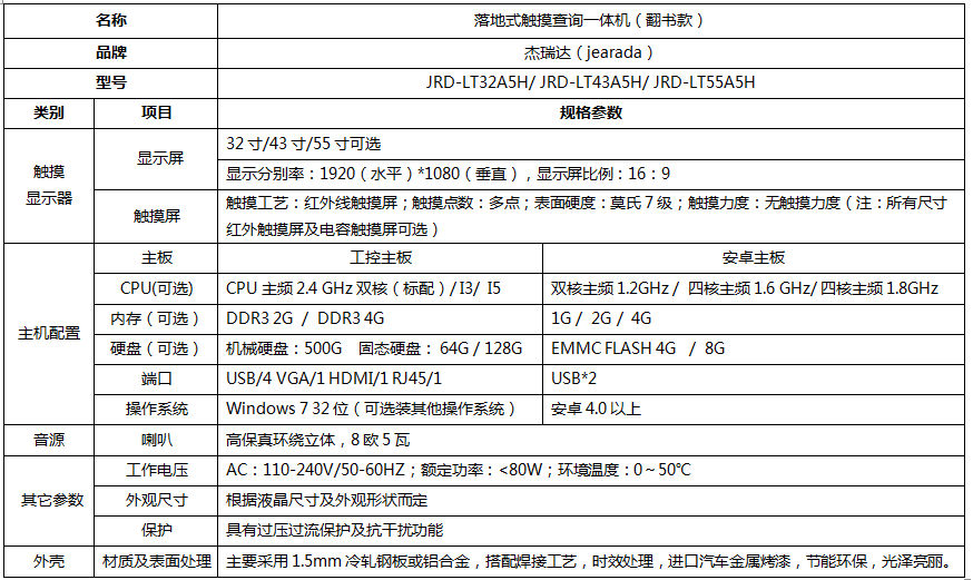 产品名称:落地式触摸查询一体机