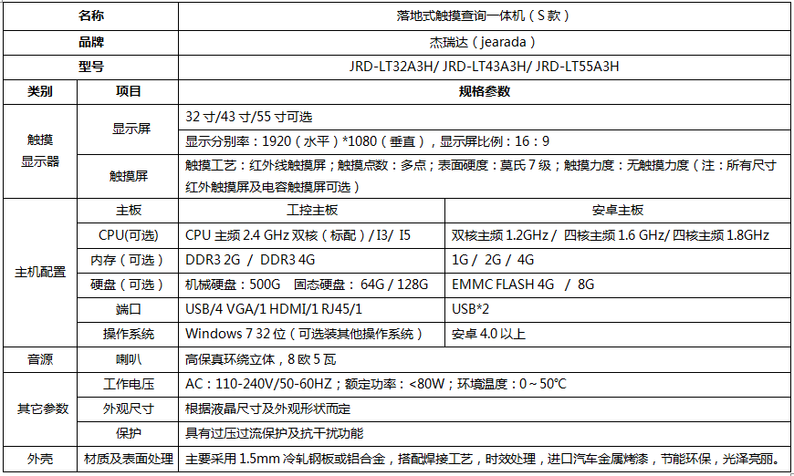 产品名称:落地式触摸查询一体机(S款)