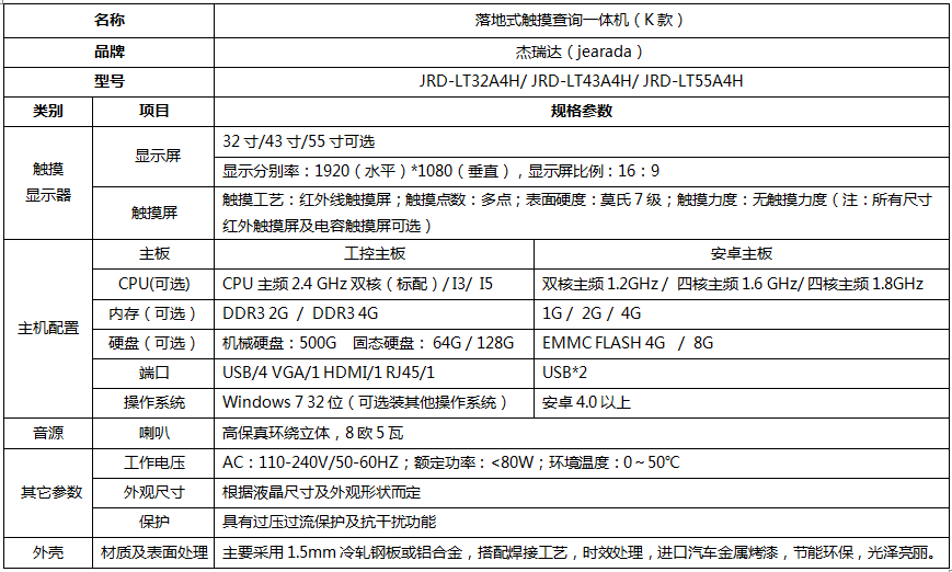 产品名称:落地式触摸查询一体机(K款)